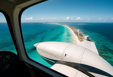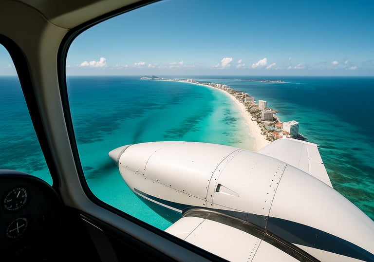 Embark on extraordinary moments across sea and sky — from luxury yacht adventures through turquoise Caribbean waters, to breathtaking panoramic flights revealing the beauty of Cancún and Mérida from above, and exclusive private jet travel designed for comfort, privacy and elegance.